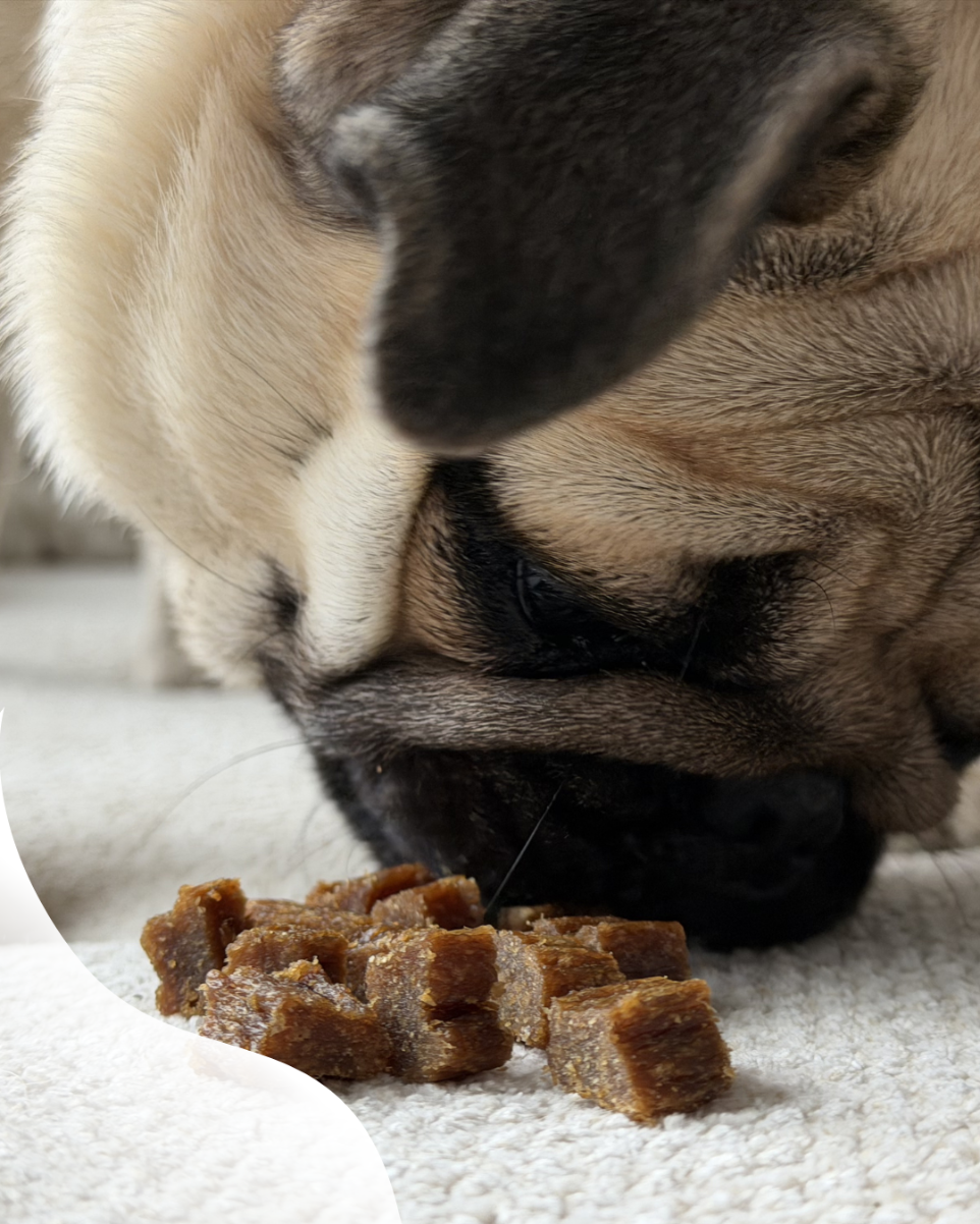 Bo doskonale wiemy, że mopsy, to coś więcej niż psy :) Tworzmy smaczki, które są dopasowane do ich potrzeb - małe kostki dla płaskich pyszczków i wysokiej jakości , najprostszy z możliwych skład.