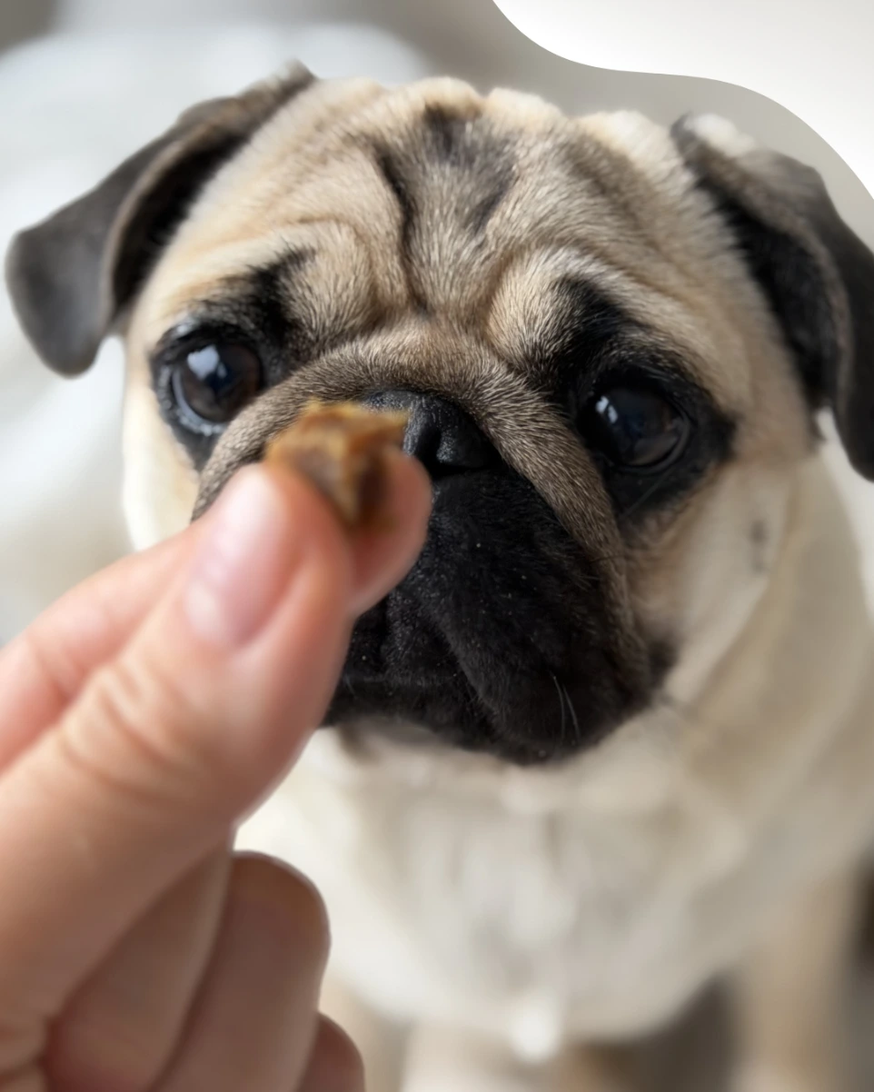 Małe porcje sprawiają, że możesz często nagradzać swojego mopsa podczas spaceru lub treningu, bez przekarmiania.